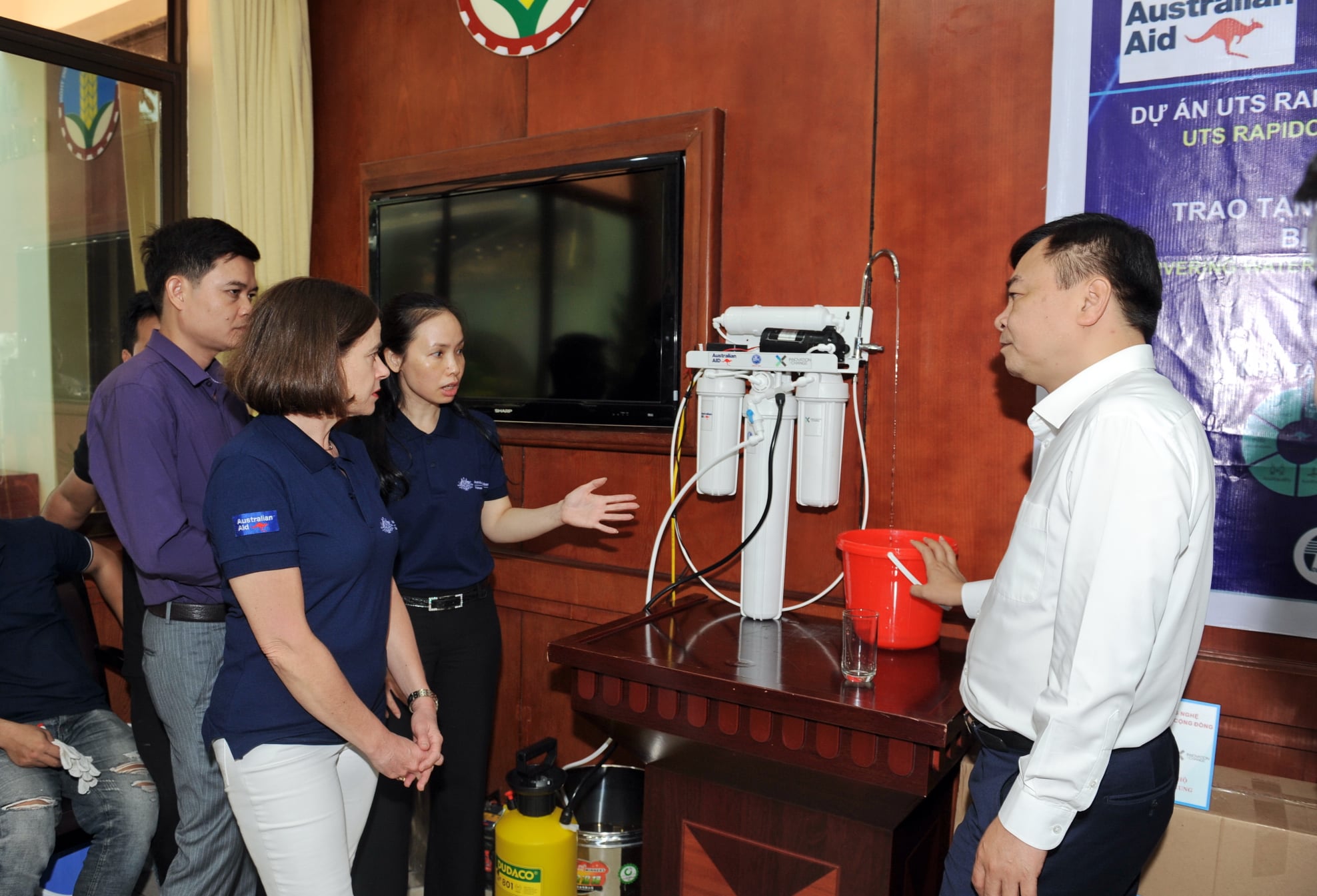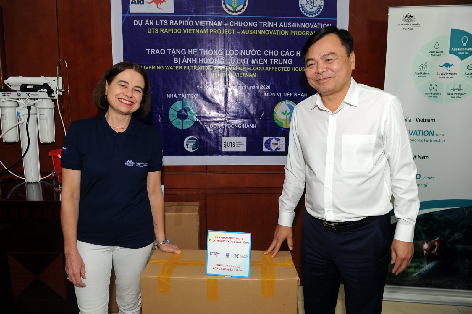 - Australian Ambassador Robyn Mudie presenting water filtration systems for floods victims in Central Vietnam through the Ministry of Agriculture and Rural Development.