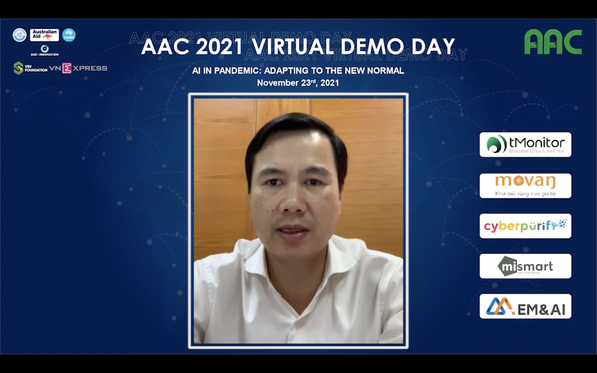 - The start-ups showcased in the event were: Cyber Apply Vietnam (harmful content filter on the Internet), EM&AI ( AI solution to enhance customer service), MiSmart (AI agricultural platform which uses drones to monitor crop health), MOVAN ISO ( automating complex production processes) and tMonitor (real-time indoor air quality monitoring system)