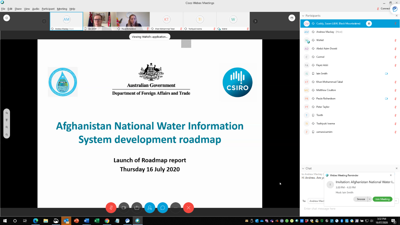 Last week marked the official launch of the Water Information System Roadmap for Afghanistan by the Australian Ambassador to Afghanistan, and officials from Afghanistan, the Australian Embassy in Kabul, DFAT, CSIRO and the Bureau of Meteorology.