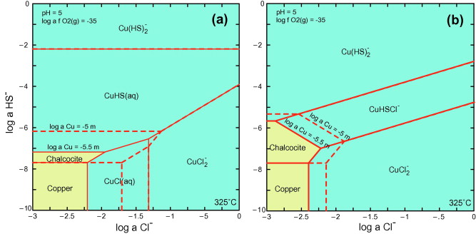 - Activity maps show a broad stability field where CuCl(HS)⁻ dominates, reflecting ligand preference: HS⁻ > Cl⁻ > H₂S.