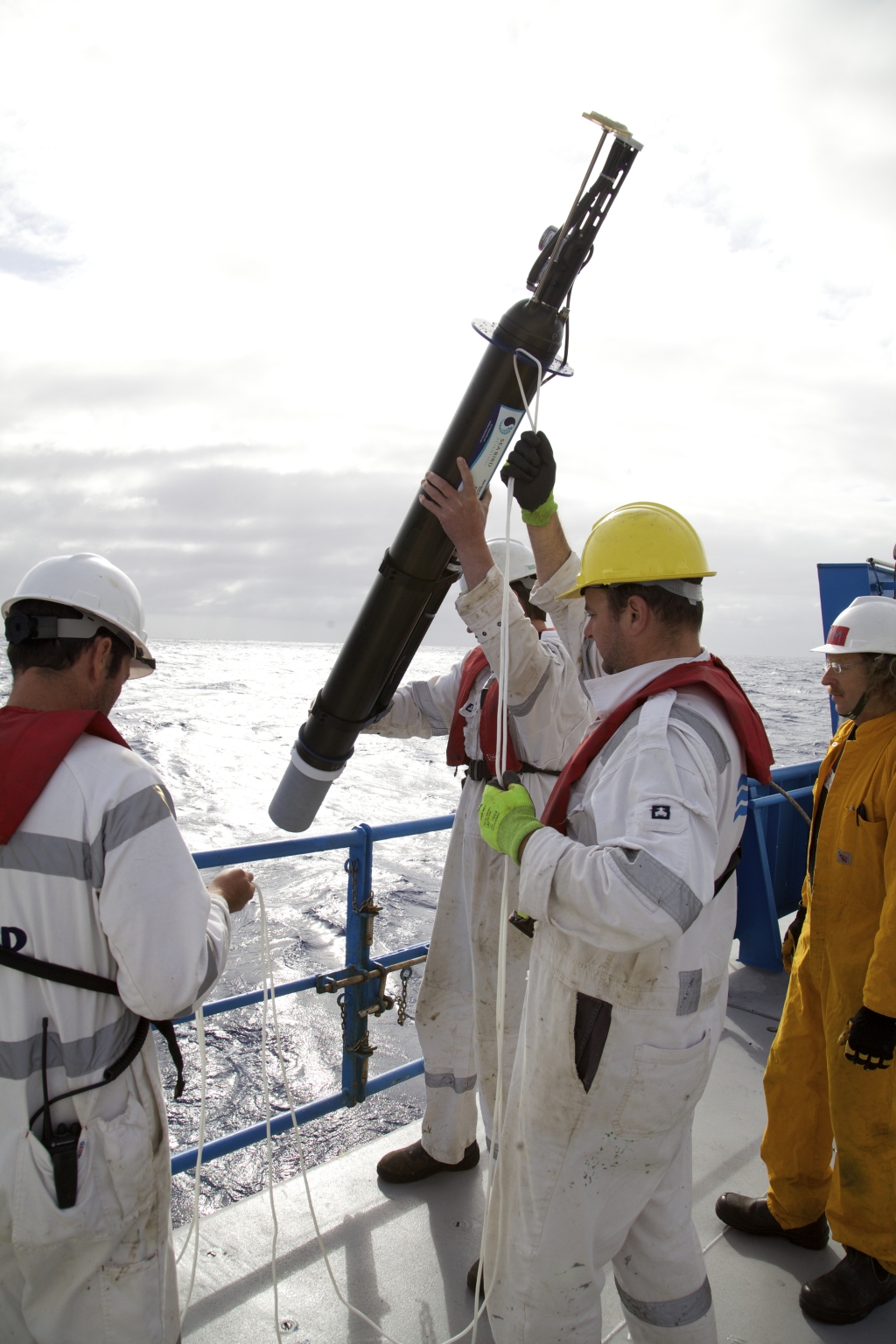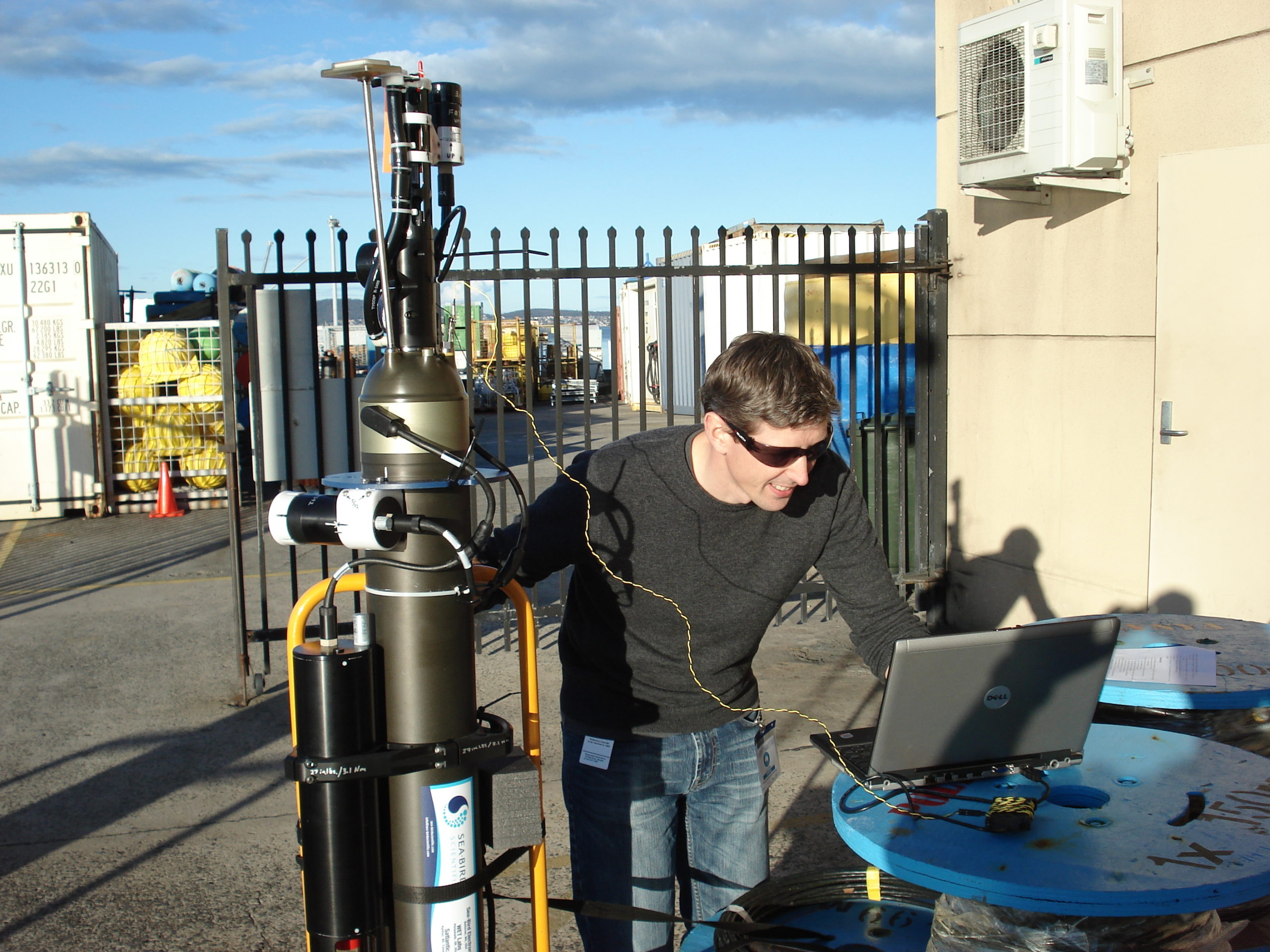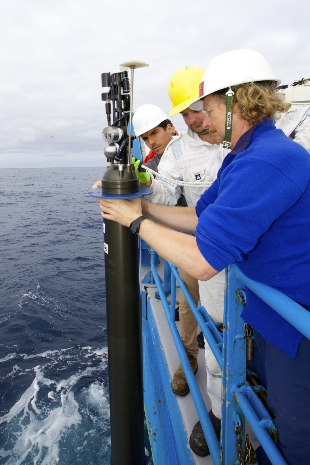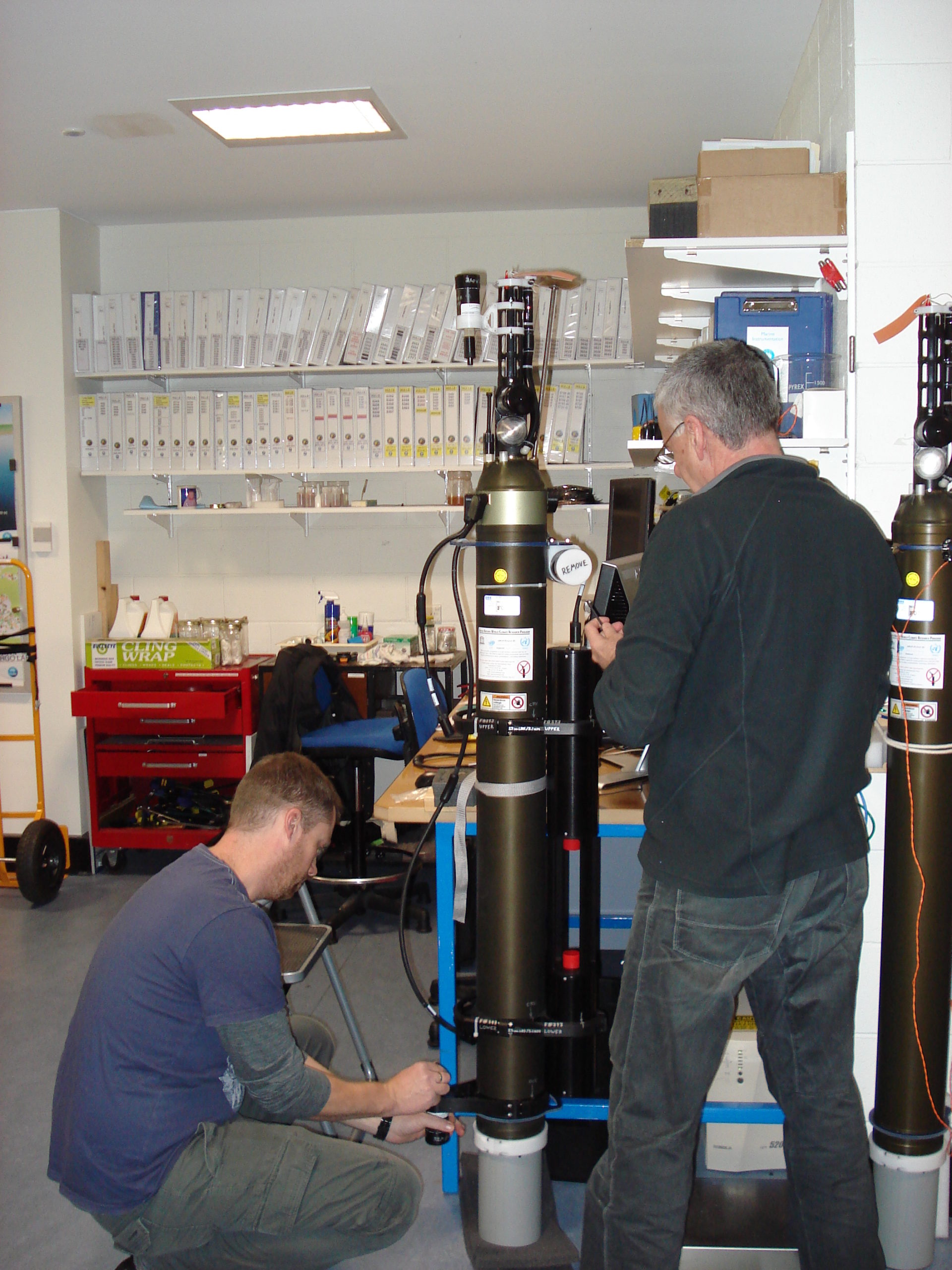 - Craig Hanstein and Alan Poole checking a NAVIS float after delivery