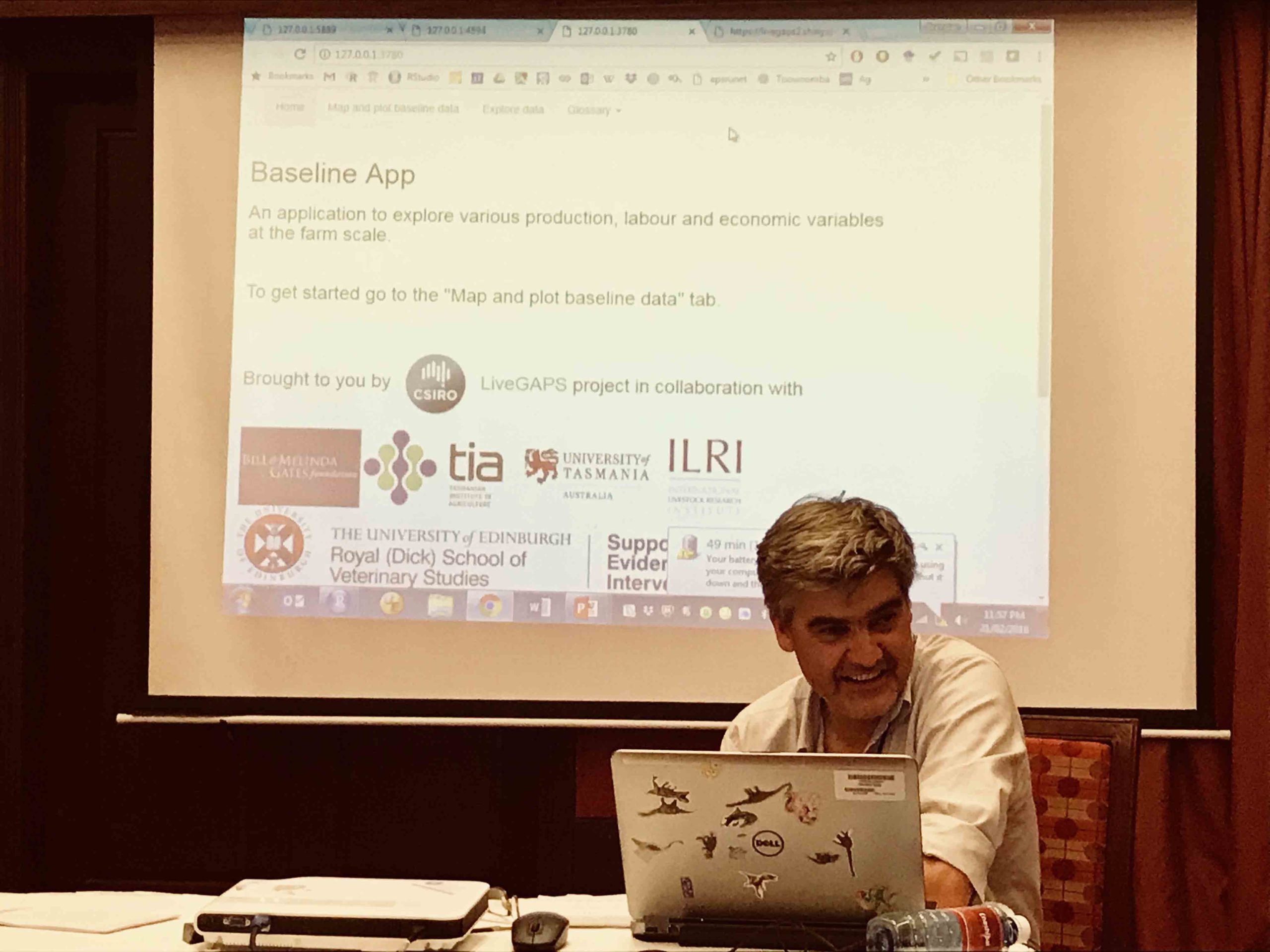 Andrew Ash, Mario Herrero, Di Mayberry, Jeda Palmer and Brendan Power participated in the meeting and presented an update of our LiveGAPS work, which aims to sustainably increase livestock yields in Tanzania and Nigeria. Andrew Ash and Di Mayberry discussed our livestock modelling, highlighting our processes, outputs and data needs. Mario Herrero and Brendan Power presented our apps – developed to make our LiveGAPS work publically available and easy to explore and visualise. This work was well received by the community. Out of this came several new partners, for example GALVmed that would like a lot more engagement from us. In addition, we connected with people from diverse organisations, for example the Food and Agriculture Organization (FAO), the University of Edinburgh, and International Development Research Centre (IDRC) that may be able to provide livestock data to improve our modelling capability for our LiveGAPS work.