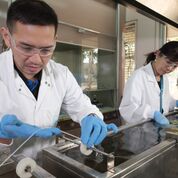 Our laboratory scale to pilot scale electrospinning facilities translate a concept to a functional material for prototypes and devices.