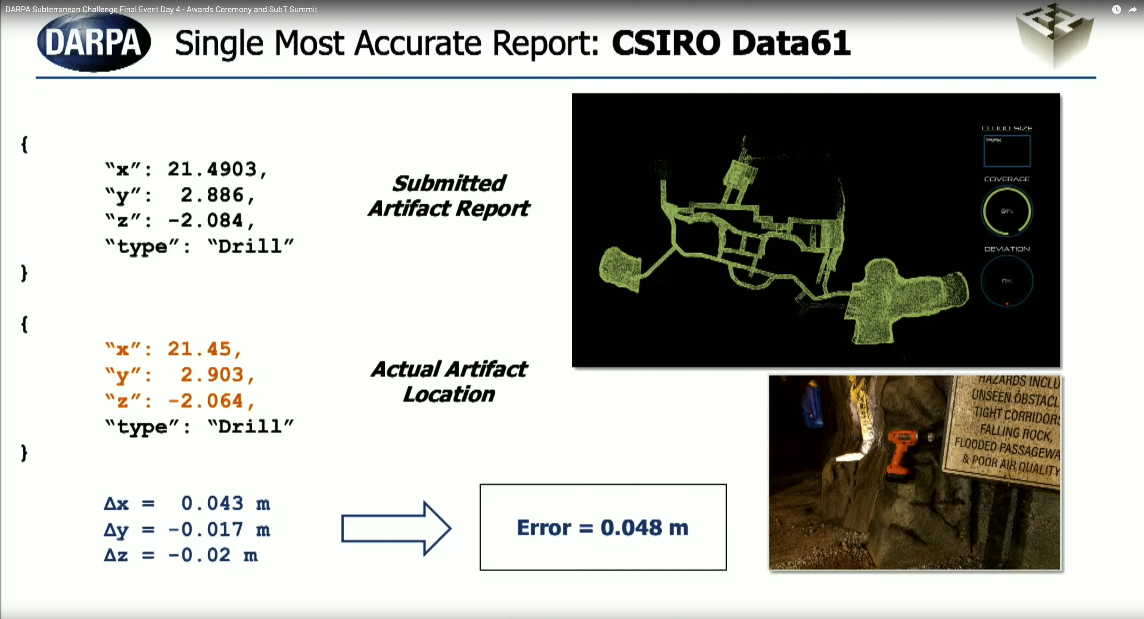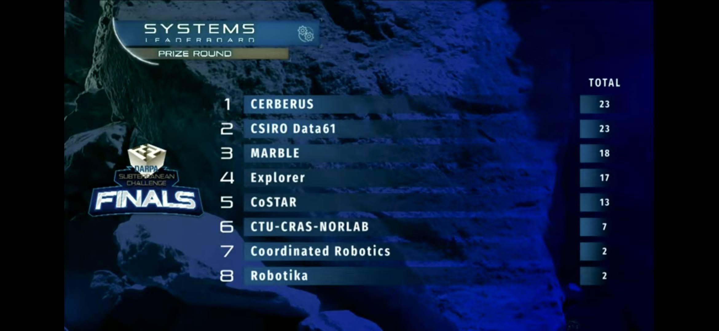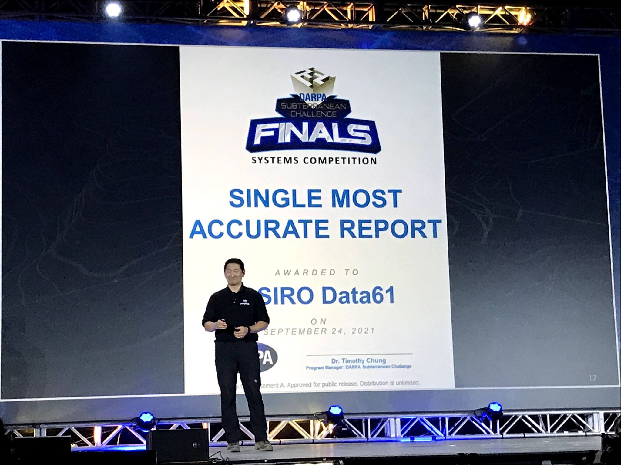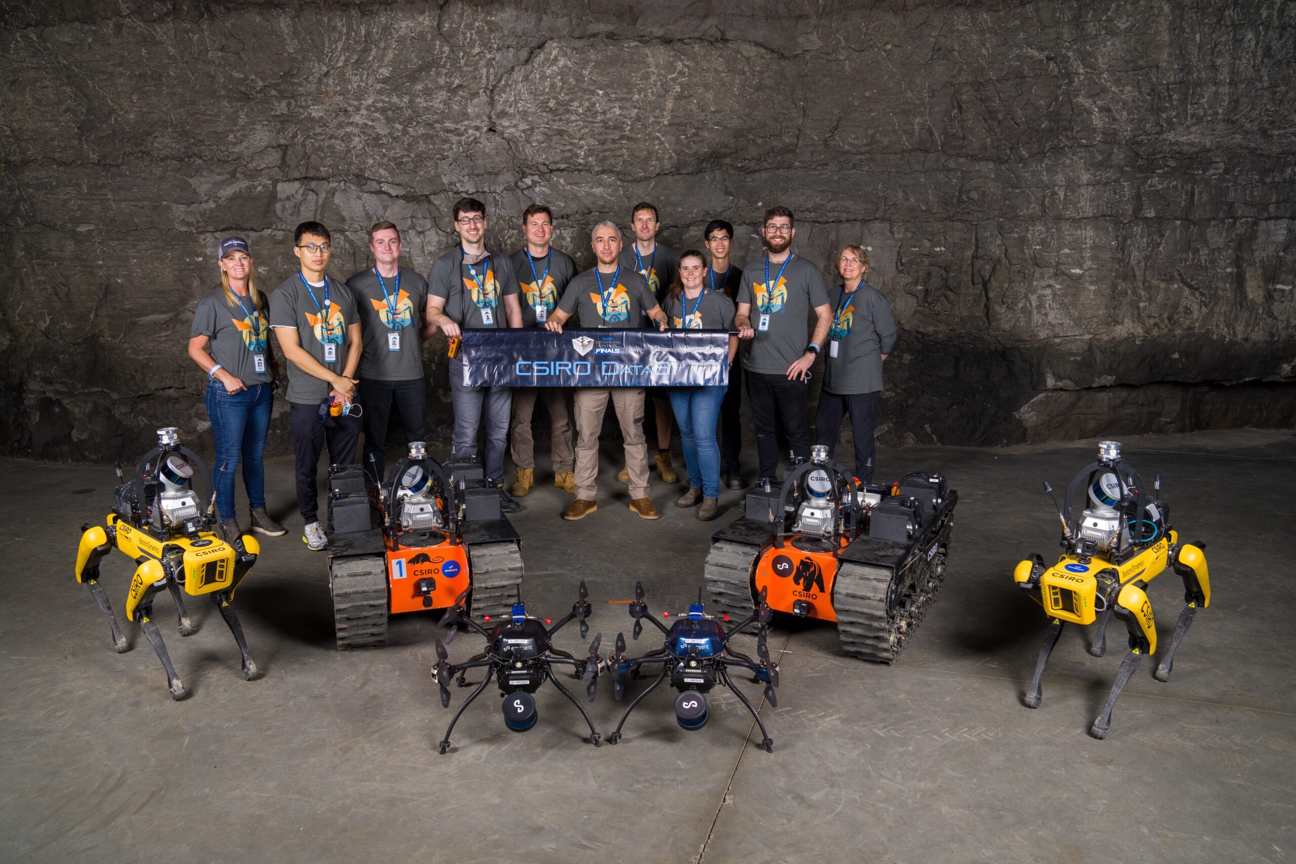 The CSIRO Data61 Team, formed by CSIRO, Emesent and Georgia Tech have finished second in the DARPA SubT Challenge! This is the world’s most important and recognised robotics competition! The team was very close to winning, but a tie breaker at 23 points with Team CERBERUS (NTNU, ETH Zurich, Oxford, UC Berkeley, University of Nevada, Reno, Anybotics, Flyability) gave the Australian led Team an outstanding runner-up place.