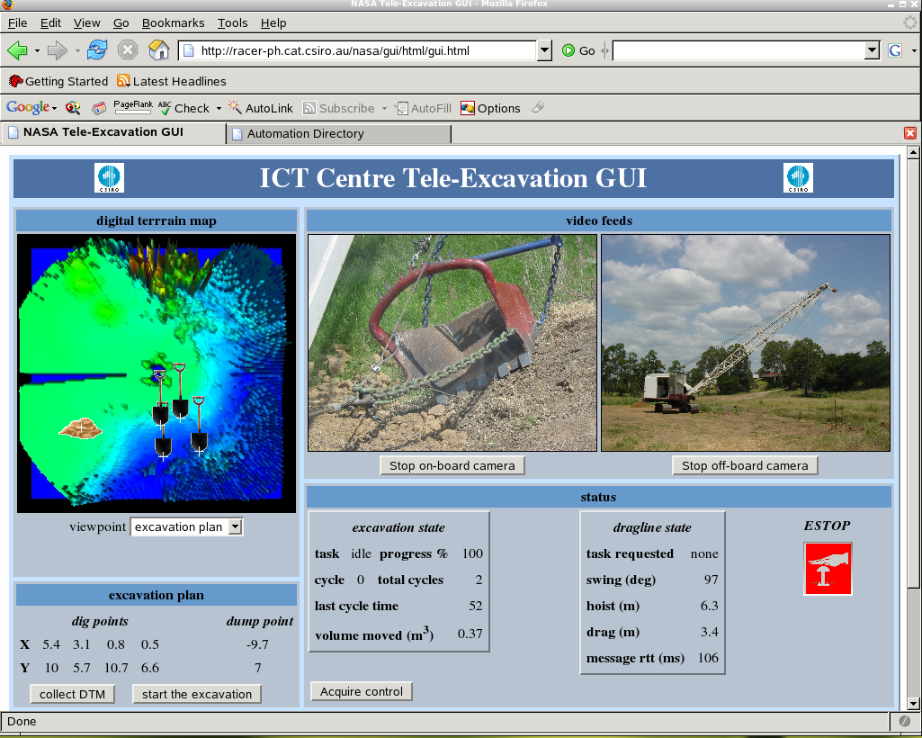 The aim of this project was to demonstrate the feasibility of tele-operation of a dragline for large-scale regolith excavation for off-world habitat construction and mineral extraction.