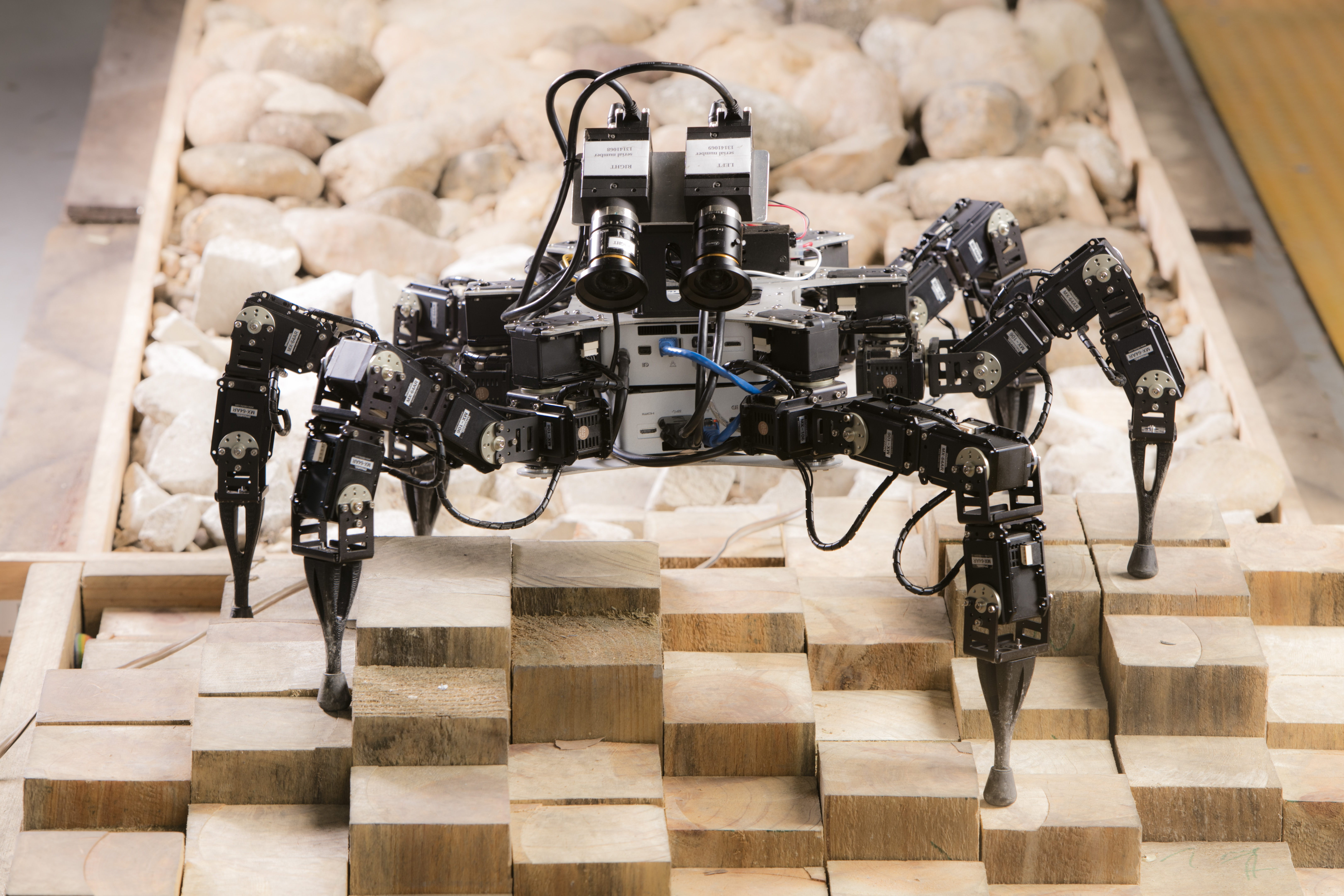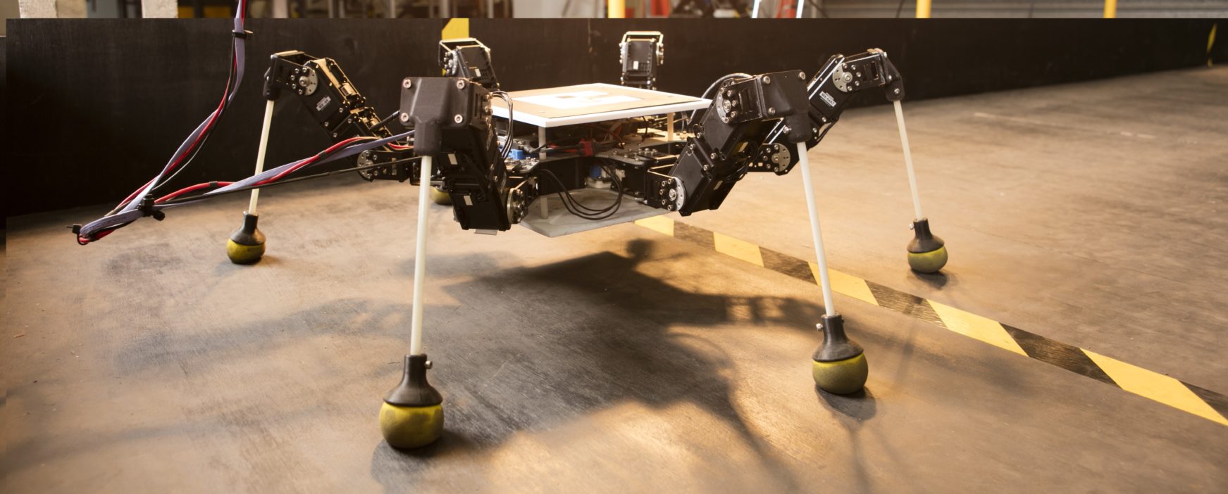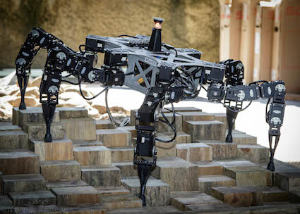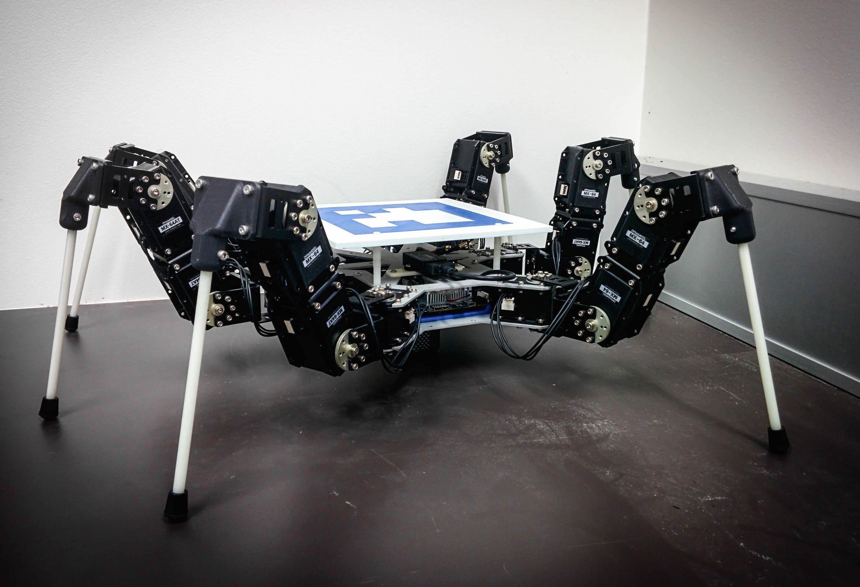- 6 legged robot learning to walk, while researchers observe its walking pattern