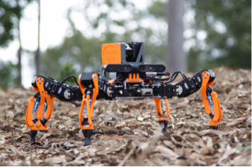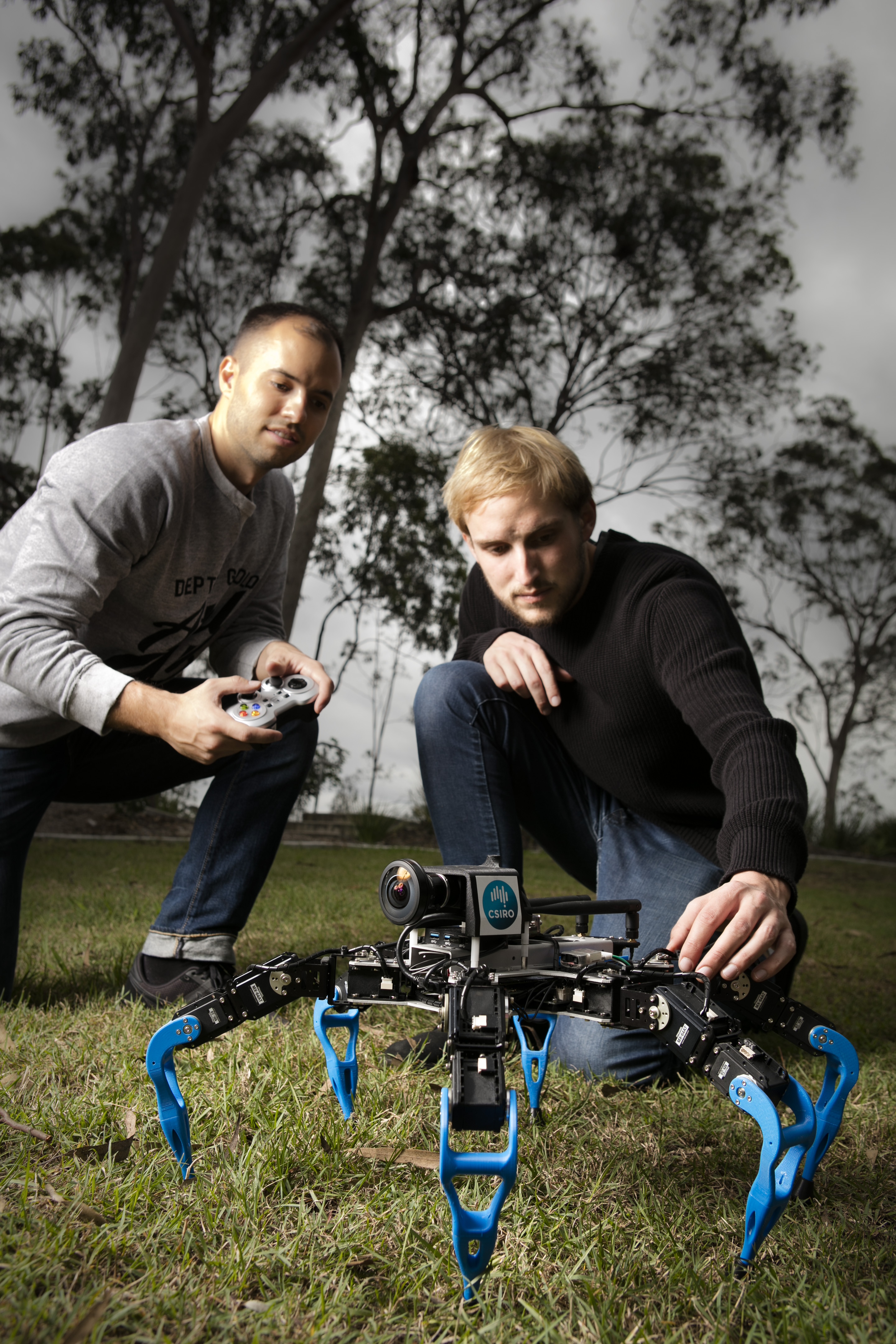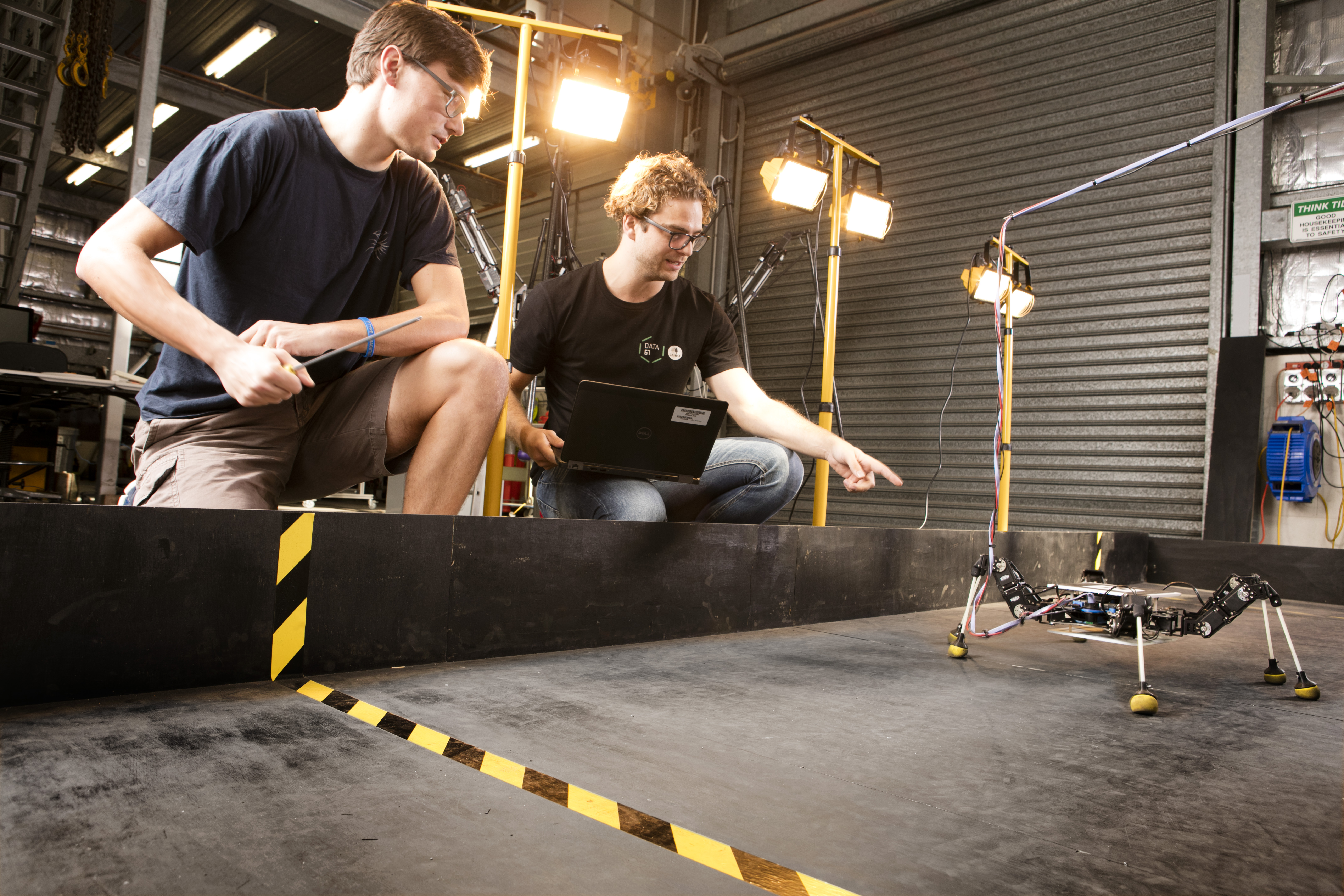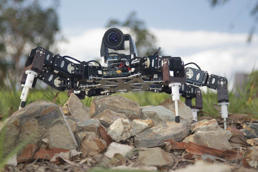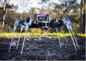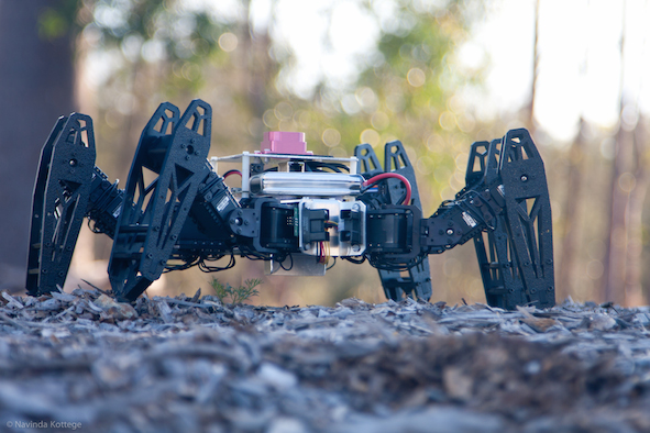 - 6 legged robot learning to walk, while researchers observe its walking pattern
