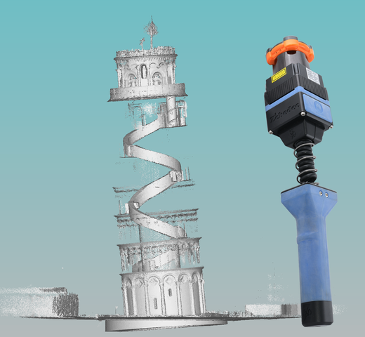 - The handheld device has a laser scanner that sways on a spring to capture millions of detailed measurements quickly