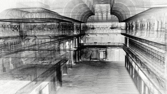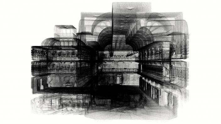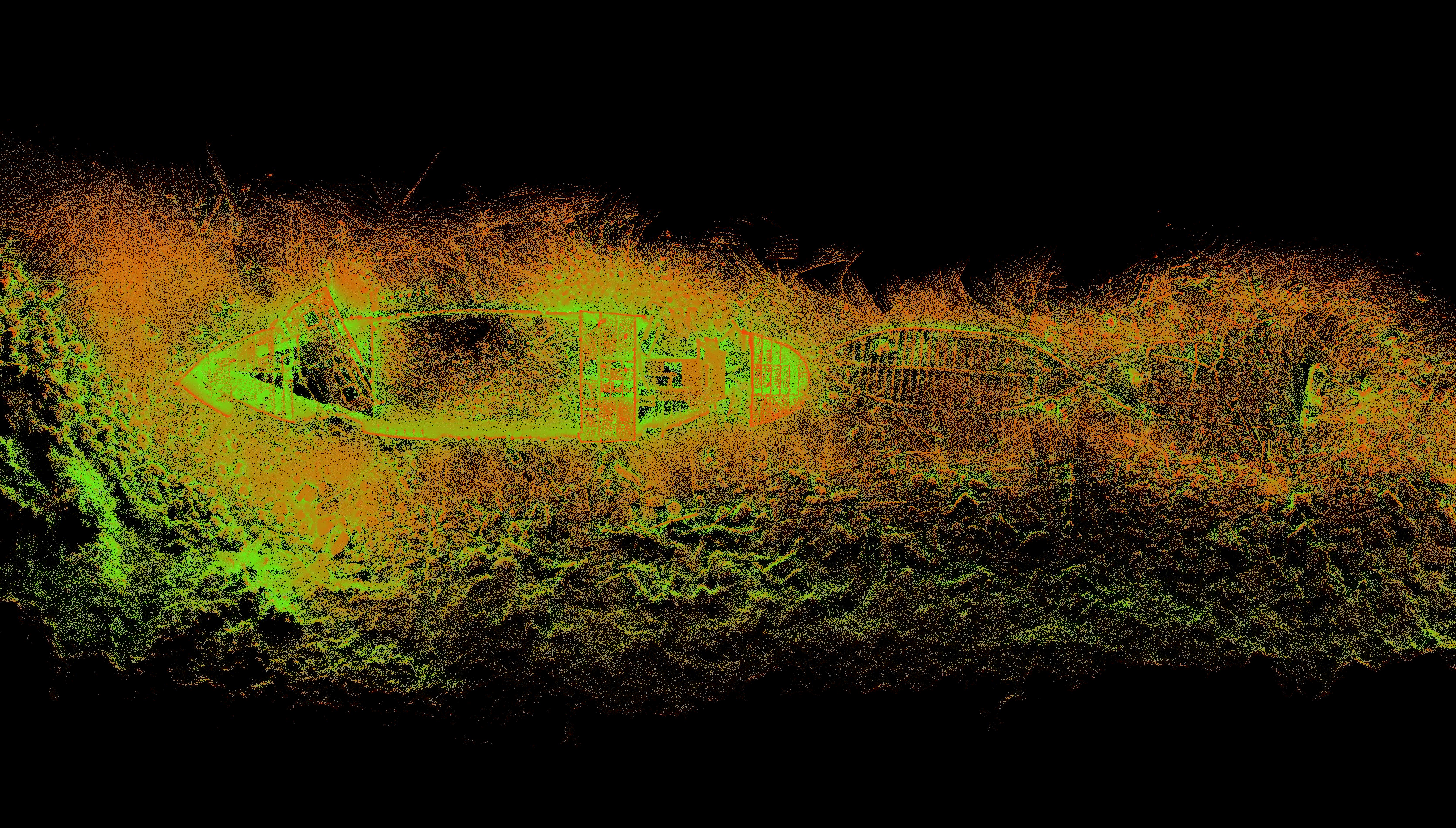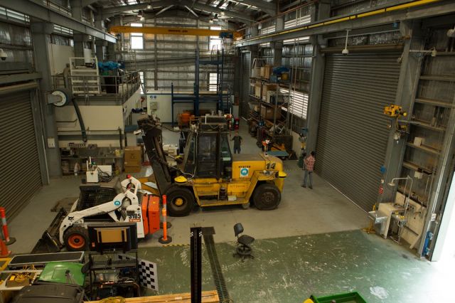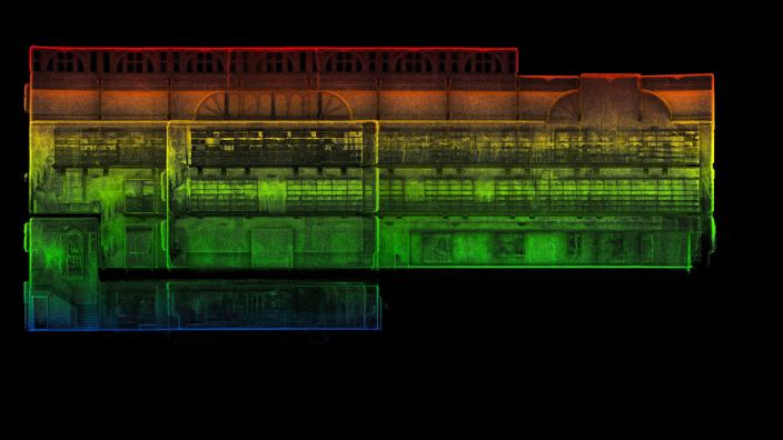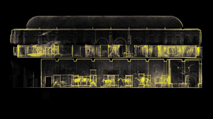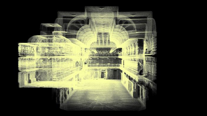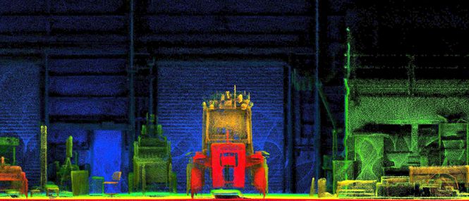 - A photograph of a warehouse area scanned at CSIRO by the Zebedee system